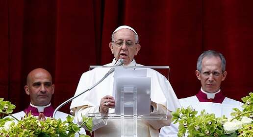 The pope made his appeal in his "Urbi et Orbi" [to the city and the world] message from the central balcony of St. Peter's Basilica at the Vatican to tens of thousands of people in the flower-bedecked square below where he earlier celebrated a Mass.