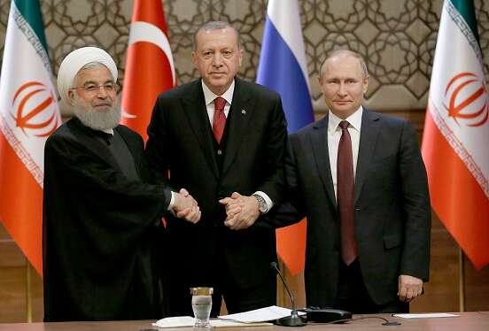 Iranian President Hassan Rouhani's participation in the meeting, alongside Russian President Vladimir Putin and Turkish President Recep Tayyip Erdogan, is perceived by the defense establishment not only as a sign of gratitude to Iran for its efforts to help salvage the Assad regime in Syria, but also as a guarantee of Iran's future role there.