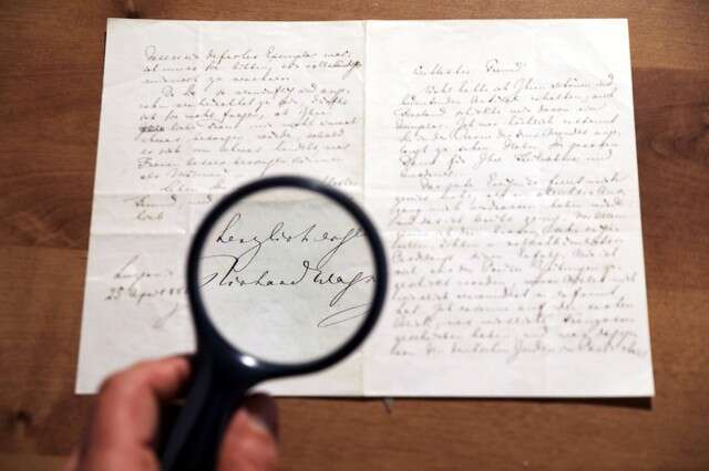 The letter, written on a yellowing double-spread sheet of paper, was penned by Wagner in Lucerne, Switzerland in 1869. It was apparently intended for the French philosopher Édouard Schuré, said Meron Eren, of the Kedem Auction House.