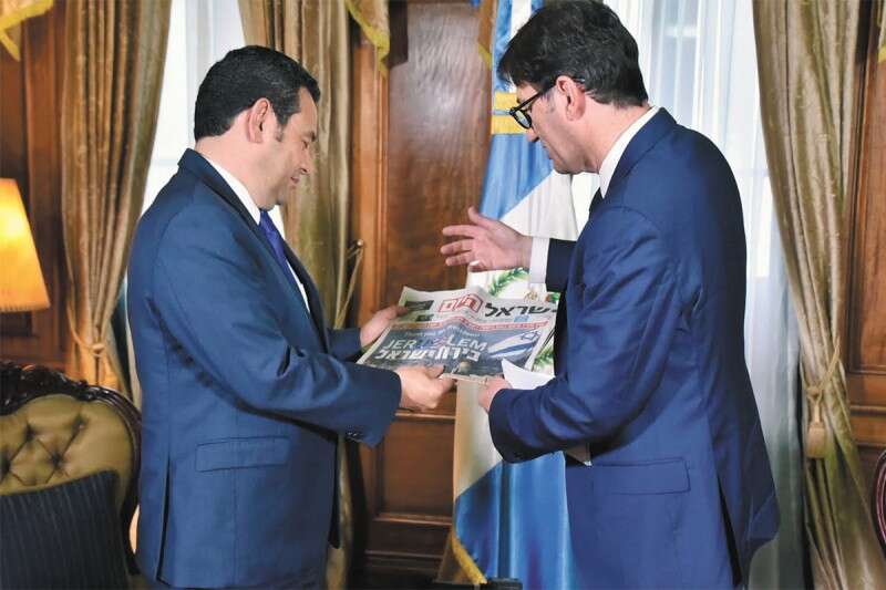 "We gave support unequivocally in this matter, and we will continue doing so on every vote on the matter. Clearly we will consider every vote in and of itself, because we are responsible. As president of Guatemala, my biggest responsibility is to Guatemala and the principle that guides me is to do what is right for us. The decision to bring our embassy back to Jerusalem is the right step, and it also will strengthen our international standing and our relationship and ties with Israeli."