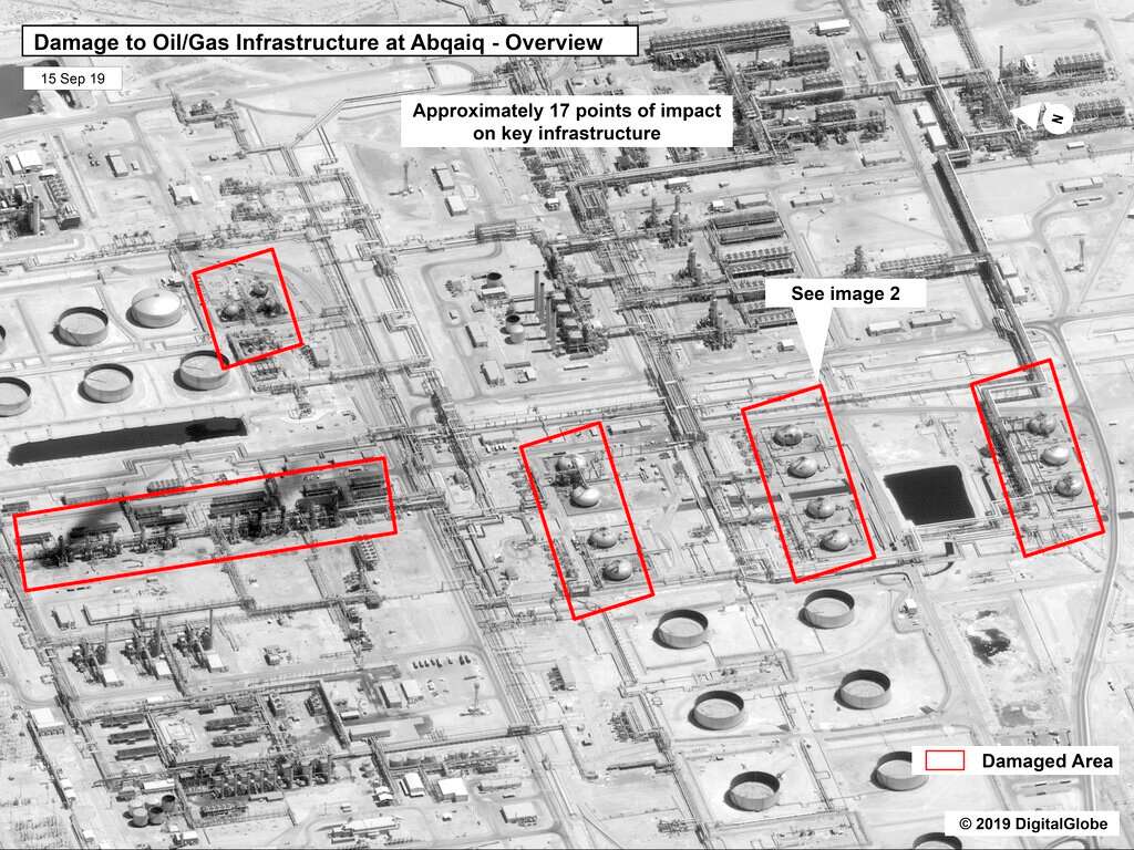 A senior US official said earlier that evidence from the attack, which hit the world's biggest oil-processing facility, indicated Iran was behind it, instead of the Yemeni Houthi group that had claimed responsibility.
