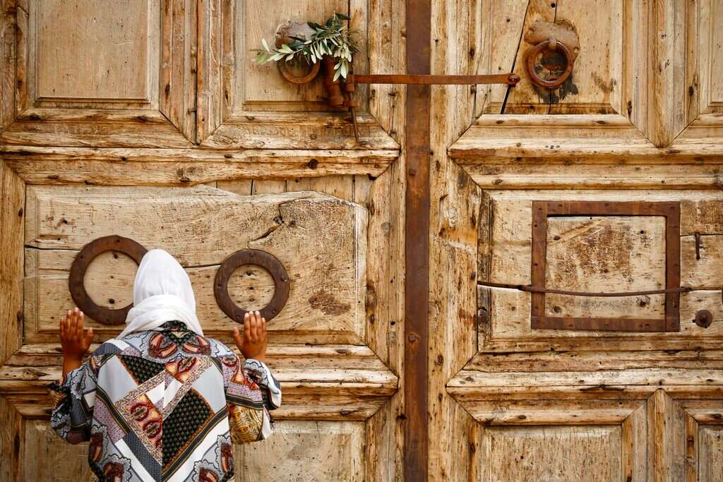 A small group of Franciscan monks and Roman Catholic faithful took to the streets of Jerusalem's Christian Quarter in the Old City Sunday to distribute olive branches, after the traditional Palm Sunday procession was canceled due to restrictions imposed to contain the spread of the coronavirus.