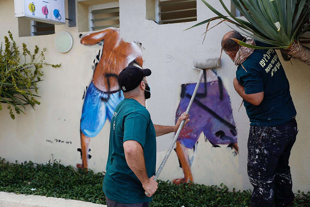Israeli authorities on Sunday erased a "Peeping Toms" mural that had long been a fixture at a Tel Aviv beach, responding to public outrage over the suspected gang rape of a 16–year–old girl in the southern resort city of Eilat.