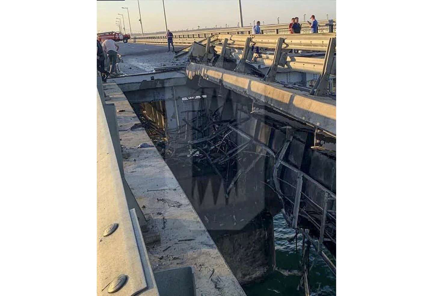 Traffic on the key bridge connecting Crimea to Russia's mainland was halted on Monday after one of its sections was blown up in what Russian officials said was a Ukrainian attack that also killed a married couple and injured their daughter.