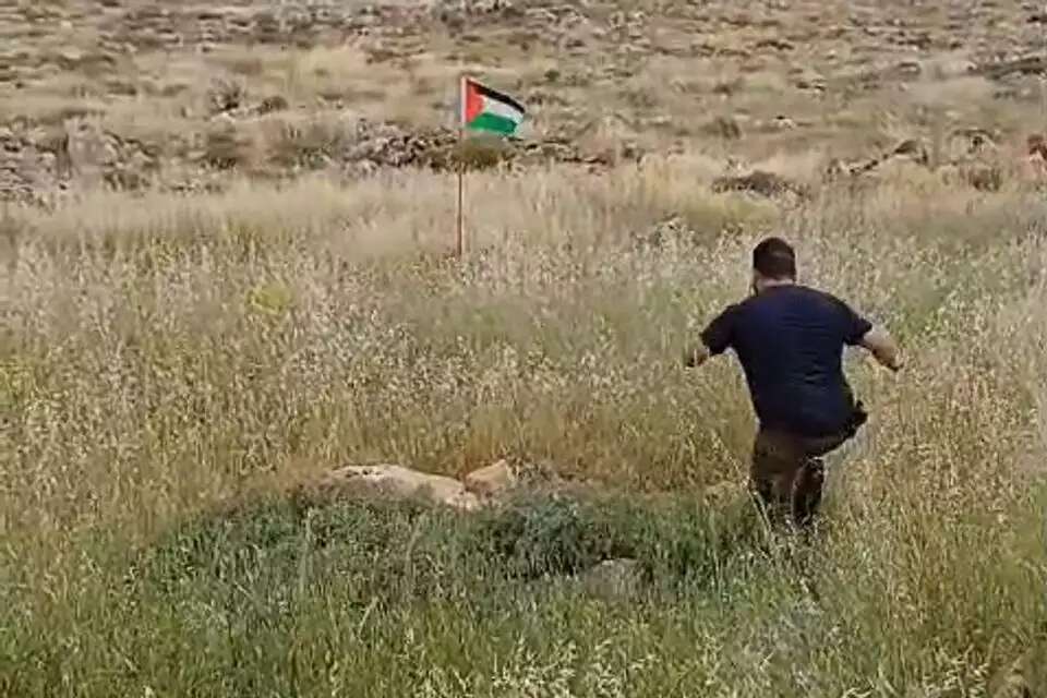 Footage from the incident site showed the man kicking the Palestinian flag moments before the explosive detonated.