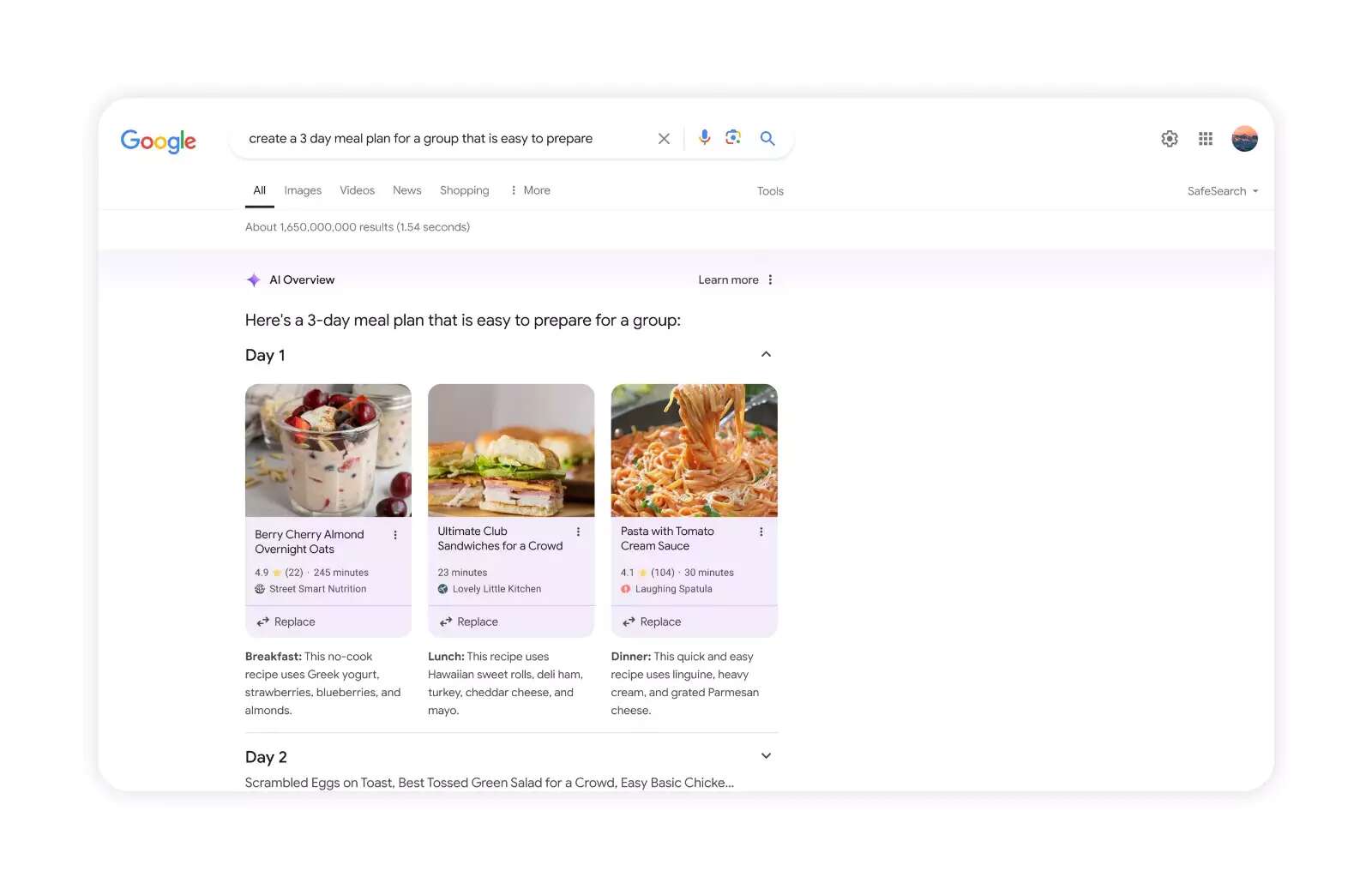 The AI Overviews feature, introduced at Google I/O 2024, provides summarized search results instead of just links.