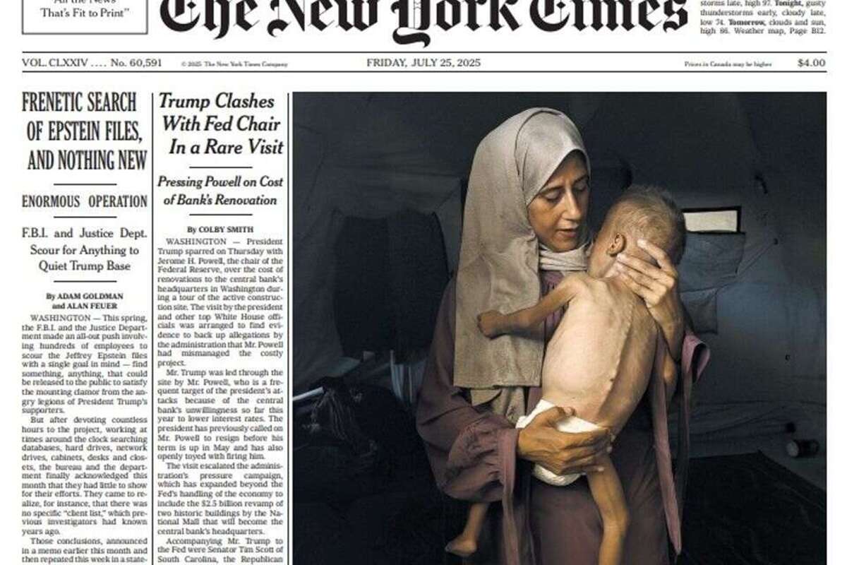 The New York Times published a clarification on Tuesday regarding an article that ran last Thursday under the headline "Young, old and sick starving to death" about the humanitarian situation in the Gaza Strip, which featured an image of a thin 18-month-old child in his mother's arms. The clarification stated that after publication, the newspaper learned from the child's doctor that he suffers from underlying medical conditions.