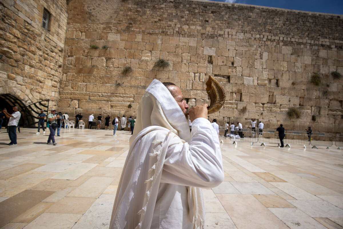 A man blows the Shofar ahead of Rosh Hashana at the Western Wall | Photo: Oren Ben Hakoon