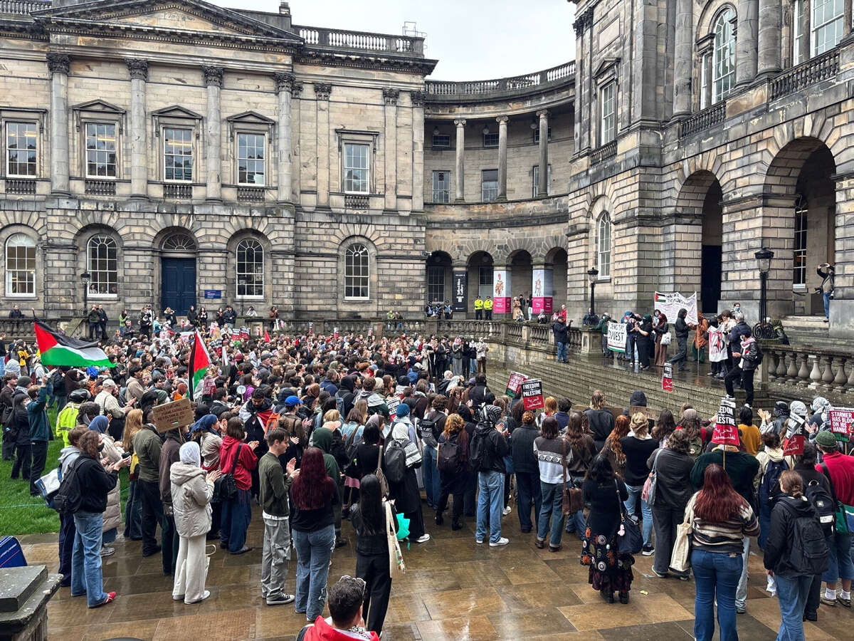 Pro-Palestinian protesters in Edinburgh Waverley break through police barriers. Comes after Scots on the Global Sumud Flotilla were detained by Israel. pic.twitter.com/q9YMlqXHnz