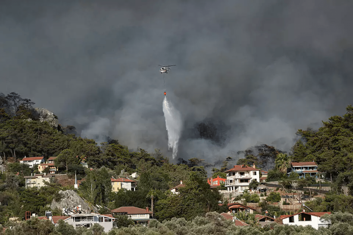A Turkish milk tanker driver encountered a wildfire on a mountain highway in southwestern Turkey and used his cargo to help fight the flames, aiding firefighters in gaining control of a brush fire that could have been devastating.