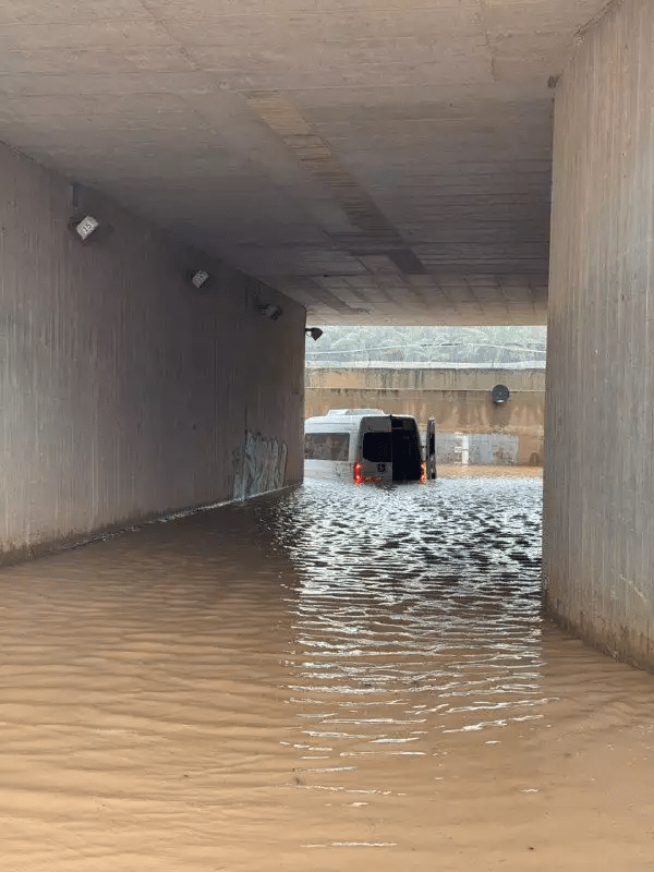 From yesterday through this morning, approximately 60-70 millimeters (2.4-2.8 inches) have fallen in the Zikhron Yaakov, Haifa, and Carmel region. Zikhron Yaakov leads the national rainfall table with 77 millimeters (3 inches) so far. Ein Carmel has recorded 68 millimeters (2.7 inches) and Haifa 60 millimeters (2.4 inches). In Zikhron Yaakov, a shuttle carrying children became stuck in an underpass. All were rescued without injury.