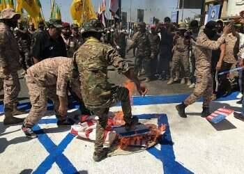 Demonstrators at the annual Quds Day protests, being held in Iran, Iraq, Lebanon and other countries in the region, burn ...